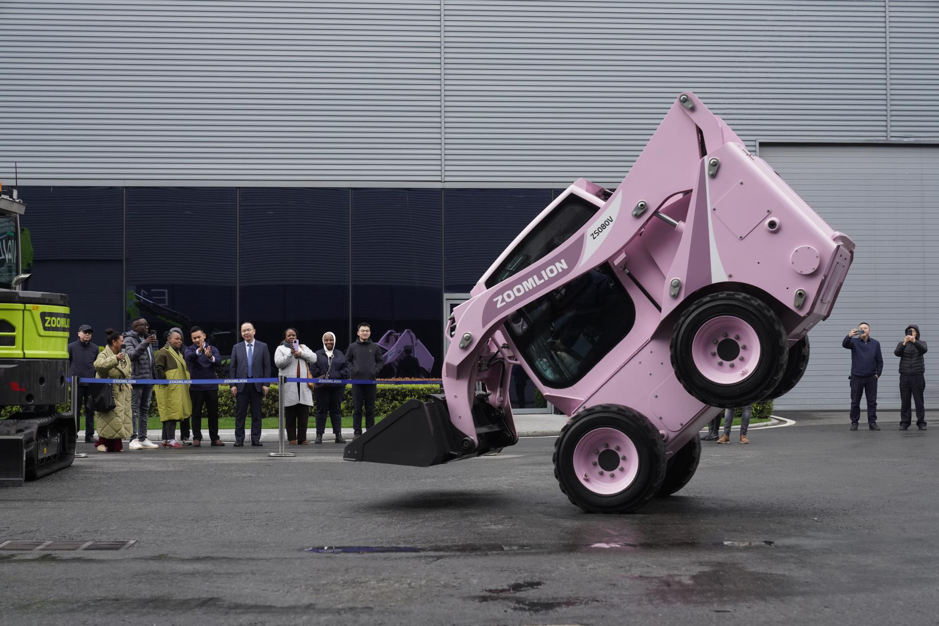 在中联智慧产业城土方机械园,代表团实地考察中大挖装配车间智能产线,详细了解中联智慧产业城情况以及挖掘机全流程智能制造工艺,并观摩了滑移装载机、挖掘机表演。考察过程中,莫拉卡妮·莫苏皮耶不时走近产线仔细观察,并详细询问公司科技研发、智能制造及在南非发展等情况。