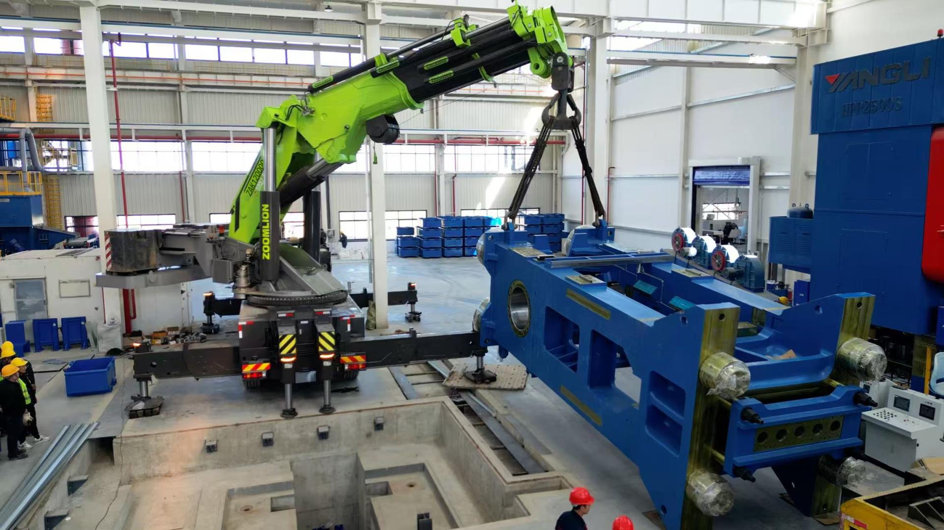 ▲全球**大吨位折臂式全地面起重机ZAK120000V663正在作业
