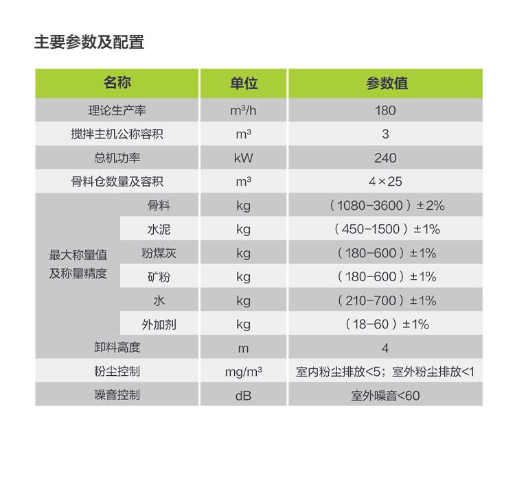 中联重科系列4.0混凝土搅拌站的配置具有搅拌性能优良、计量精确稳定、可靠性高、保养维修方便、高环保性能、模块化程度高等特点,市场口碑好,市场占有率高,是混凝土施工及商品混凝土生产的理想和首选设备。