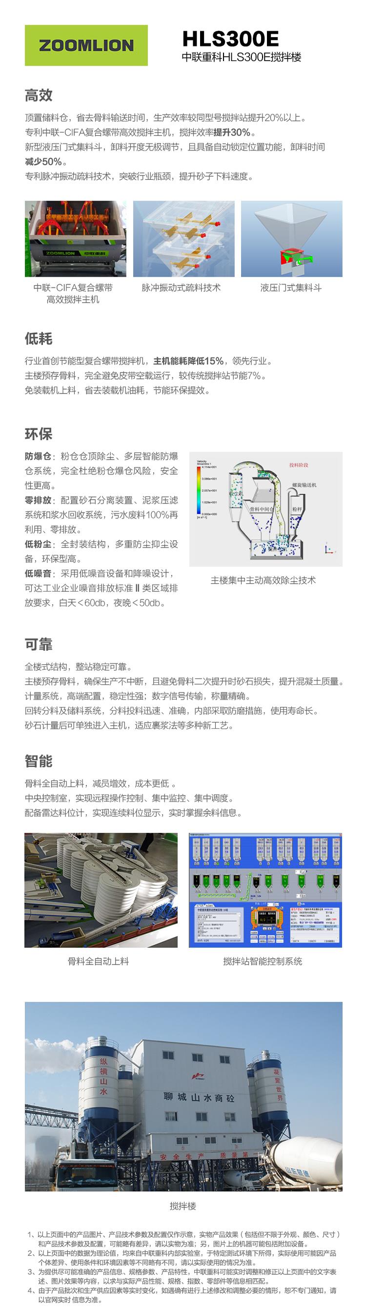 HLS300E混凝土搅拌楼配有我公司自行研制的计算机管理系统和自动控制系统,操作简单、方便。采用Windows操作系统,全中文菜单显示,各设备状态全过程模拟显示并配有声光报警。在搅拌楼工作时,只需操作少量的按钮后,整个工作过程就全部转交计算机控制。 搅拌主机选用中联-CIFA搅拌主机,主要电气元件采用进口产品。使HLS270系列搅拌楼的配置具有:搅拌性能优良、计量精确稳定、可靠性高、保养维修方便、高环保性能、模块化程度高等特点,是混凝土施工及商品混凝土生产的理想和首选设备。